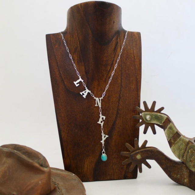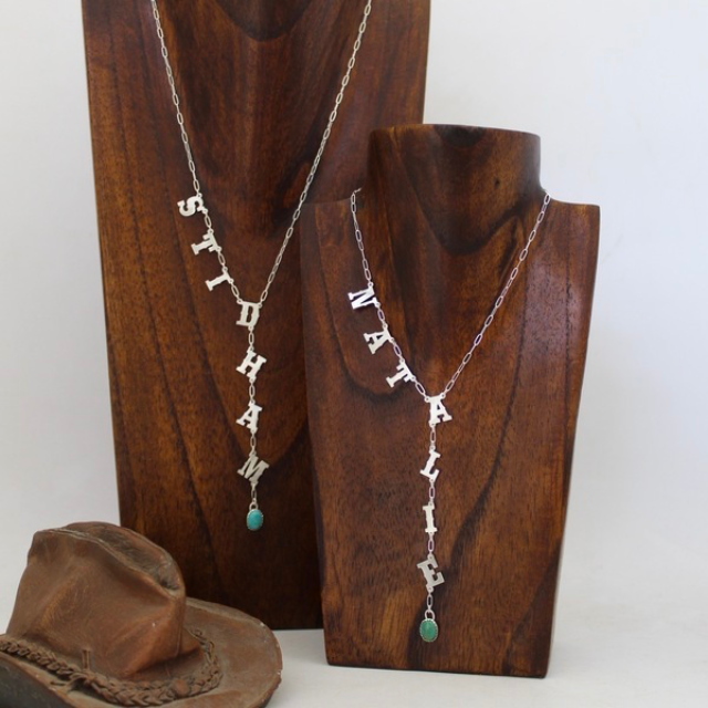 Personalize a gorgeous sterling silver name necklace with a stunning drop down