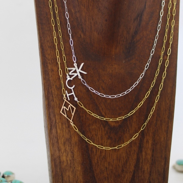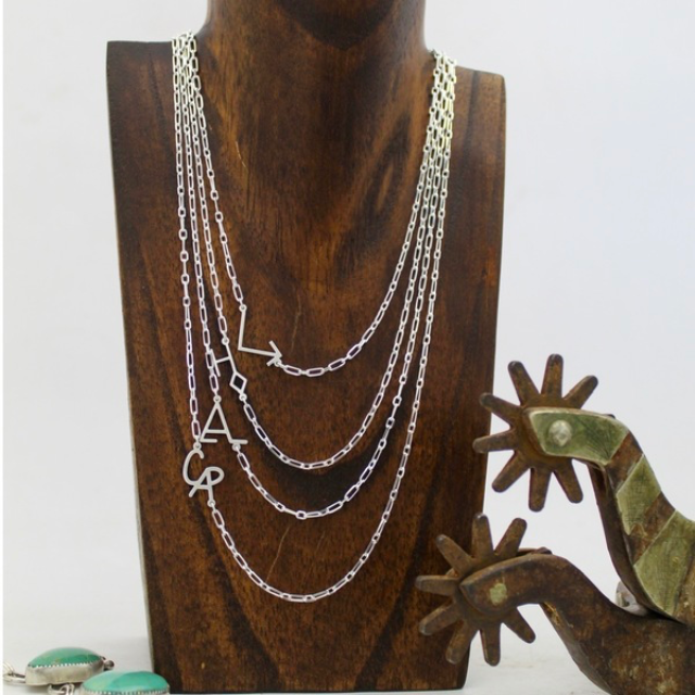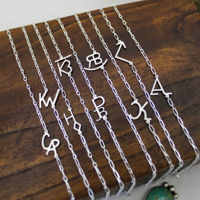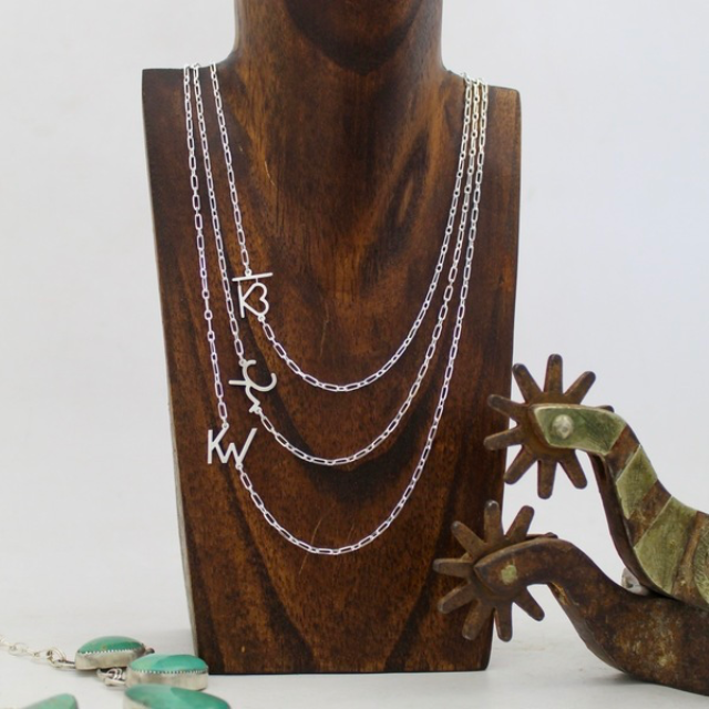 Customize a necklace perfect for stacking! A tiny brand necklace fit for a cowgirl. Tiny brand necklaces are 1/2” to 3/4” long on a sterling silver chain. Brand is linked inside the chain, not dangling down.