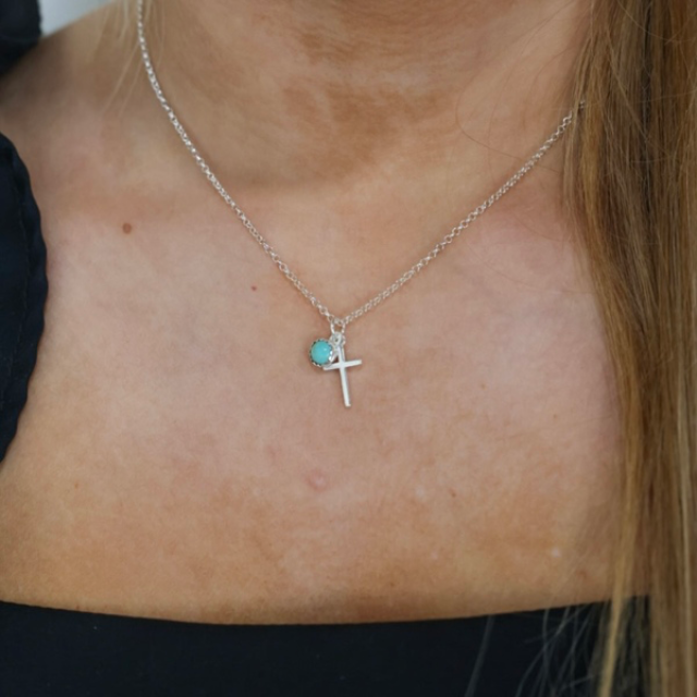 Handmade with sterling silver & 6mm kingman turquoise charm