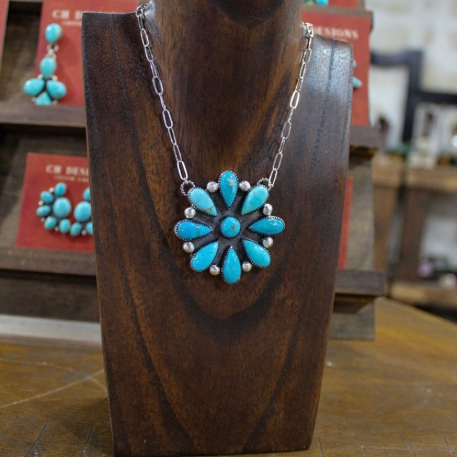 Hand crafted in sterling silver with bright blue Kingman turquoise