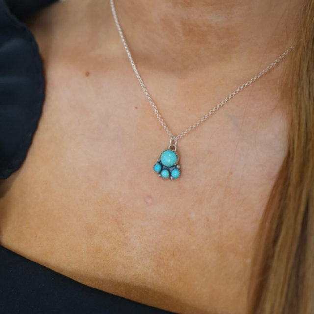Handmade with Sterling Silver Comes in 4 color options Kingman Turquoise Comes on a 16" Sterling Silver chain