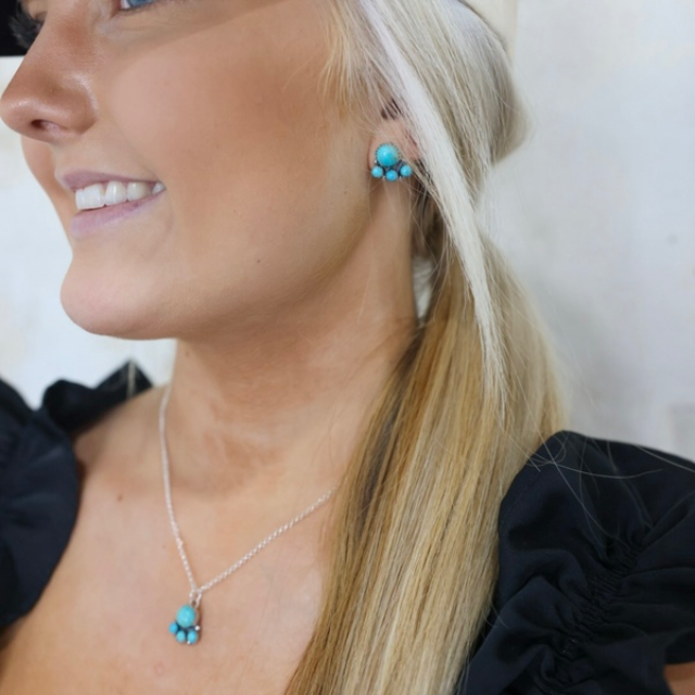 Handmade sterling silver and Kingman turquoise. 1/2” long. Extremely lightweight.