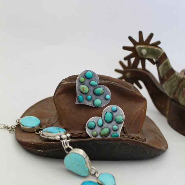 Hand crafted in sterling silver with kingman turquoise stones