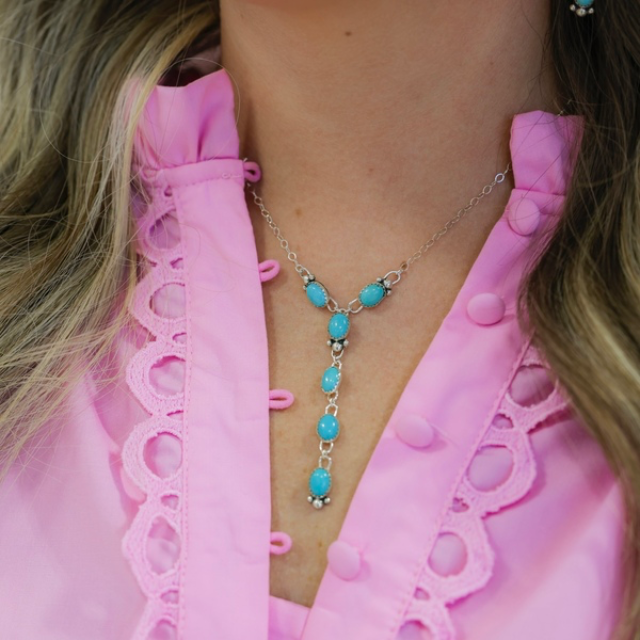 Handmade sterling silver and Kingman turquoise set Necklace is 18” long with 2” drop Earrings are extremely lightweight 2” long